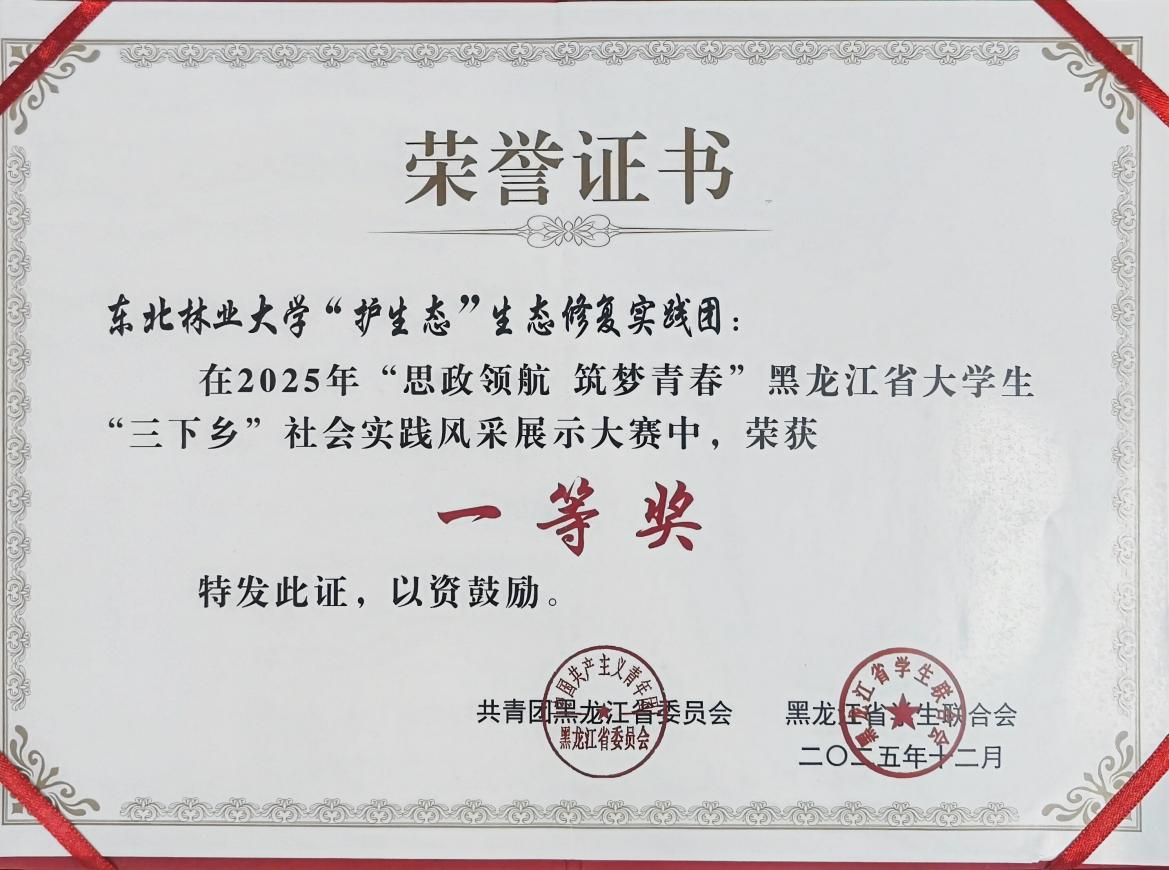 近日,2025年“思政领航筑梦青春”黑龙江省大学生“三下乡”社会实践风采展示大赛决赛在黑龙江大学落下帷幕,生态学院“护生态”生态修复实践团获评一等奖