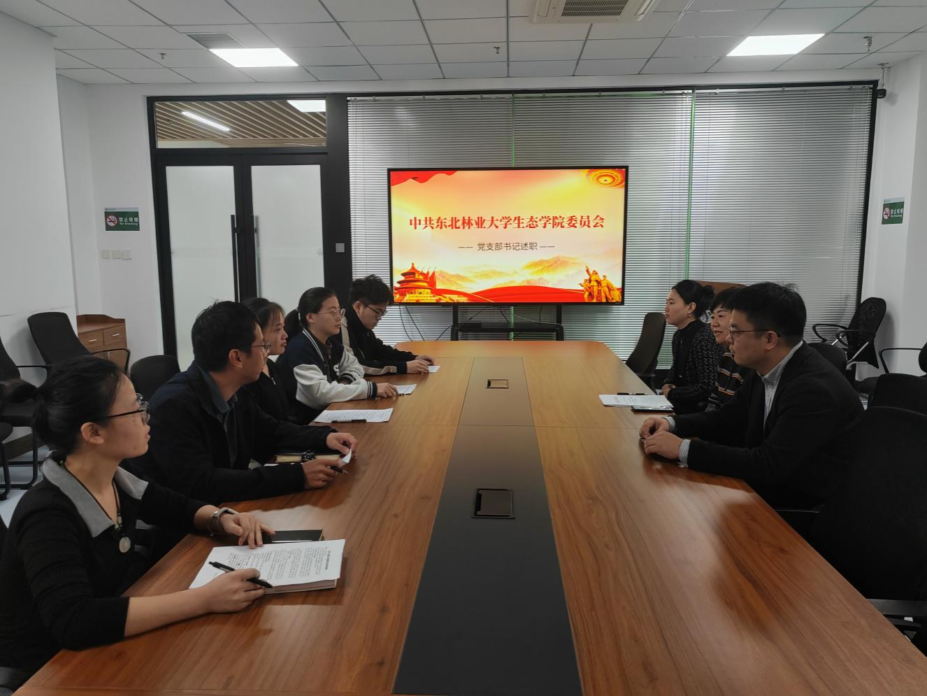 为进一步压实基层党建工作责任,提升党支部政治功能和组织功能,2026年1月5日,生态学院在林科楼1109会议室召开2025年度党支部书记述职评议会。会议由学院党委书记张艳波主持,副院长何杨辉、党委委员张佳慧、师生党支部书记和党员代表参加。