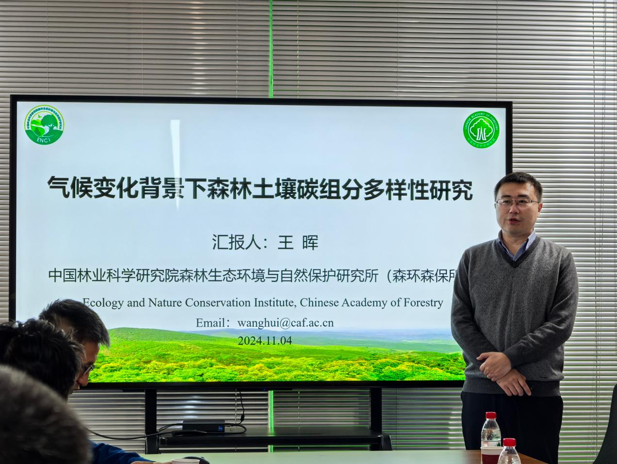 王晖研究员带来了题为 “气候变化背景下森林土壤碳组分多样性研究”的精彩报告。王晖研究员首先深入剖析了我国“碳达峰碳中和”战略目标实现过程中的挑战。提出了土壤有机碳功能组分多样性的新观点,为辨析土壤有机碳稳定性提供了新视角。提出特定功能树种管理提升森林土壤固碳潜力和稳定性的前言理论,指出了我国森林贡献“双碳”目标的森林分区分类经营管理途径。