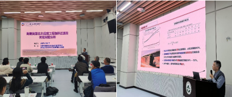 俞教授的报告深入浅出,指出青藏高原地区对气候、环境变化具有较高的敏感性,气温变暖程度明显高于全球平均水平,当地的冻土环境严重退化。而冻土区路桥过渡段是冻土区线性工程的关键技术难题,长期困扰着青藏高原地区线性工程的安全和稳定。报告围绕此项难题,从工程病害形成发展机理的角度,对主控要素、环境影响以及防治措施进行生动讲解,并对水平聚冷管、靶向热棒阵以及整体式降温等过渡段处理新对策和新突破进行讲解,极大地开拓了同学们的视野,并对我国青藏高速公路等重难工程进行展望,引发同学思考。报告结束后同学们积极发言。俞教授结合工程实际回答同学们的问题,并对同学们的研究方向和方法上进行指导。