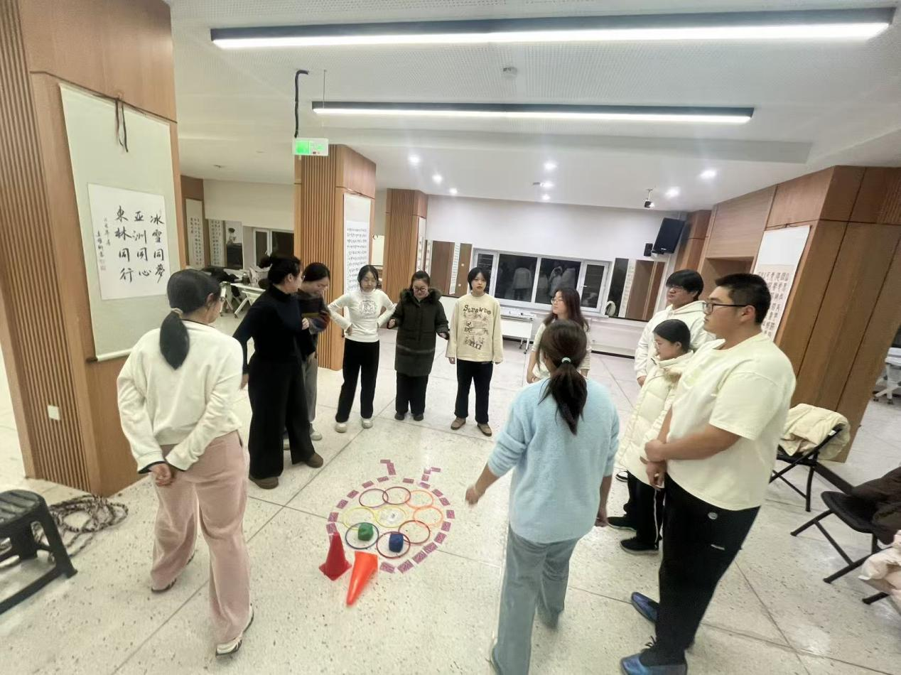 当晚,训练营还组织了别开生面的素质拓展活动。在于文浩老师的带领下,学员们通过“破冰热身”、“团队组建”、“滚雪球”、“雷区取水”及“创意大比拼”等一系列精心设计的环节,在协作与挑战中增进了彼此了解,深化了团队情谊,显著增强了学生干部队伍的凝聚力与向心力。