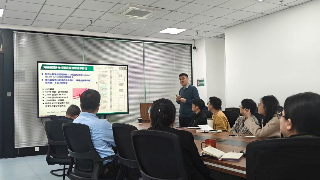 在交流讨论环节,与会师生就基因功能验证的实验设计、进化速率的比较方法、多基因协同作用、气候变化对蝙蝠病毒携带的潜在影响等问题,与赵华斌教授进行了深入探讨。赵教授结合具体研究案例,耐心细致地解答了师生疑问。